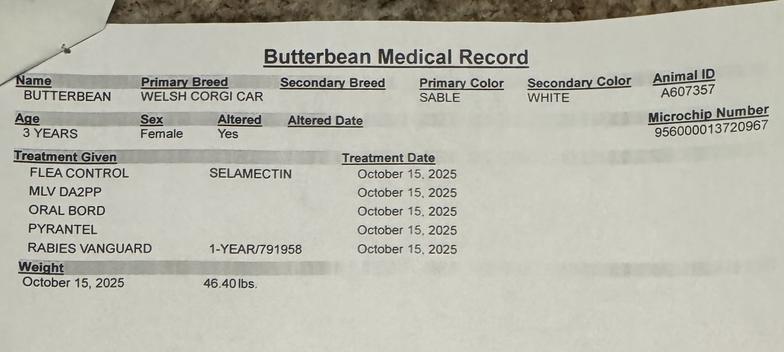 I did find her microchip in my paperwork, contacted that person, but she denies owning this dog, so I went into rescue mode, met another previous customer of mine to meet me in North Bend to pick her up. I paid the fees and gladly welcomed her back. She appears to be in good health, but is about twice the weight she should be, so is currently on a weight loss program. She had been spayed and the shelter gave all her vaccines to ensure she is up to date.